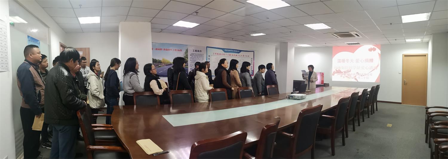 11月20日下午,公司假座工農(nóng)路拓改工程A標(biāo)段項(xiàng)目部,并以此為主會(huì)場(chǎng),分設(shè)揚(yáng)州、徐州、金湖等駐外項(xiàng)目部分會(huì)場(chǎng),專場(chǎng)舉行“愛(ài)心捐助” 活動(dòng),為身患白血病的湯如影同學(xué)募集愛(ài)心救助款,當(dāng)場(chǎng)募集善款6.666萬(wàn)元,交到患者家屬手中。