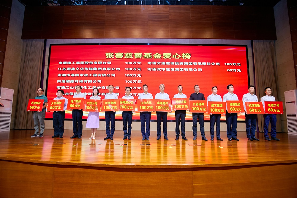 9月7日,由中共南通市委、南通市人民政府主辦的南通市“慈善之城”建設(shè)啟動(dòng)儀式暨第三屆“南通慈善獎(jiǎng)”先進(jìn)典型表揚(yáng)會在市行政中心舉行,我公司董事長張武榮獲評第三屆“南通慈善獎(jiǎng)”最具愛心捐贈個(gè)人。同時(shí),市慈善總會設(shè)立的“張謇慈善基金”揭牌捐贈儀式上,我公司代表上臺舉牌捐贈100萬元。